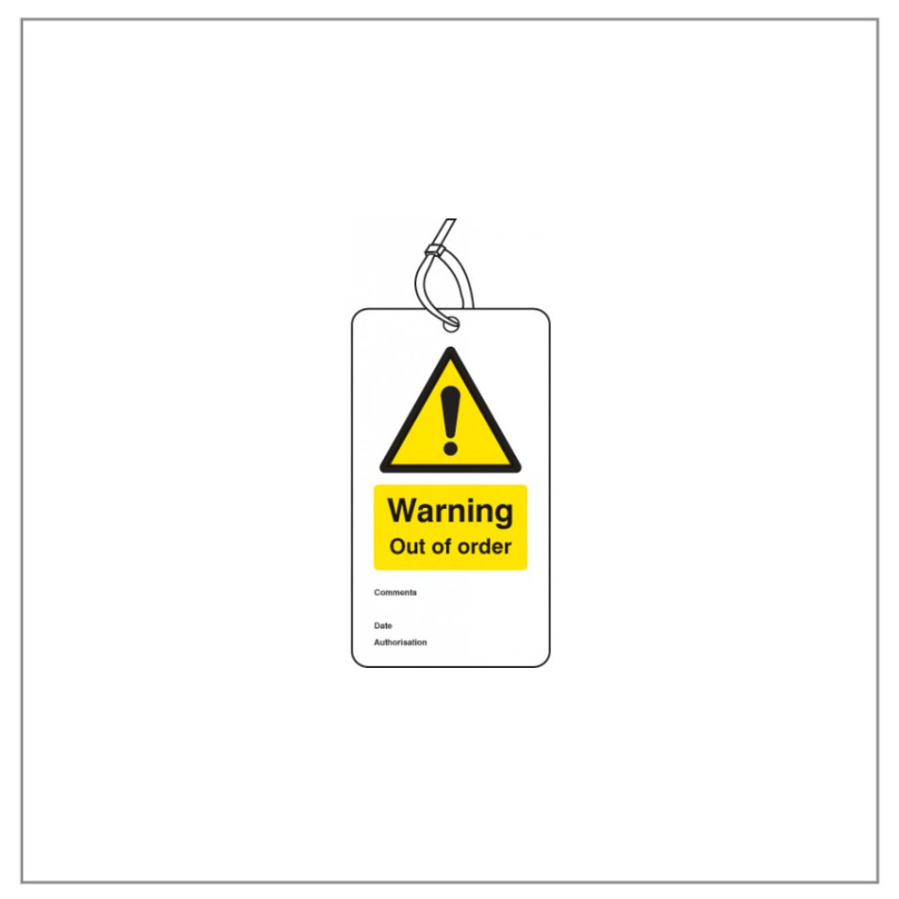 80 x 150mm Double sided printed anti-glare safety tags, Supplied complete with zip ties to secure in position.